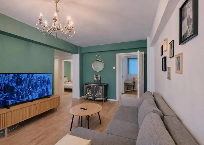 Il Central Riverside Grand Apartment offre agli ospiti la comodità di servizi di self-catering, come una cucina completamente attrezzata e una zona pranzo per il loro divertimento. La fermata dell'autobus Piata Natiunile Unite si trova accanto a quest'appartamento, mentre la stazione della metropolitana Piața Unirii è a circa 5 minuti a piedi.